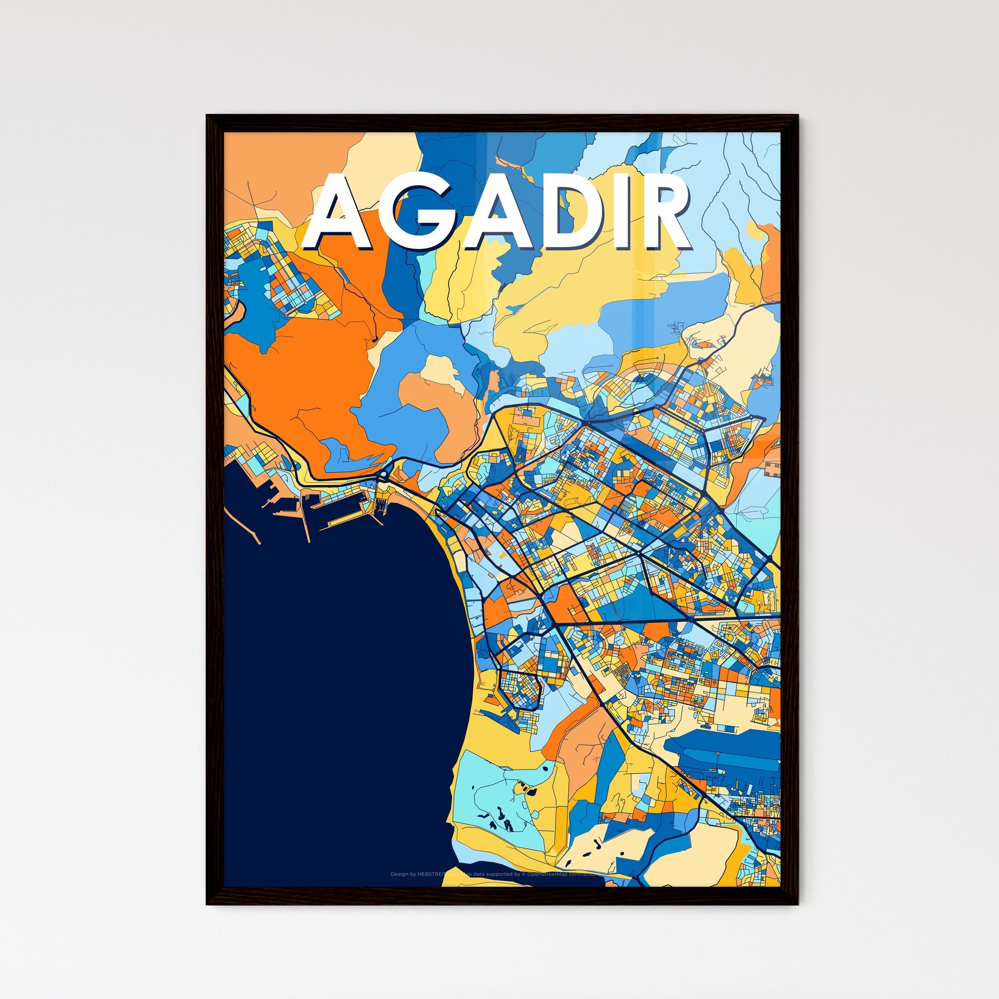 AGADIR MOROCCO Vibrant Colorful Art Map Poster by HEBSTREIT